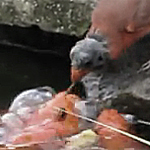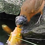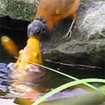 I samband med klipp om fåglar som matar fiskar dök National Geographic upp med något av en utmaning. En röd kardinal (Cardinalis cardinalis) kommer, enligt den som äger dammen, varje dag och matar guldfiskarna. Det här upprepas ett antal gången varje dag. National Geographic har publicerat det här under rubriken Bird Filmed Feeding Goldfish—Here’s Why.